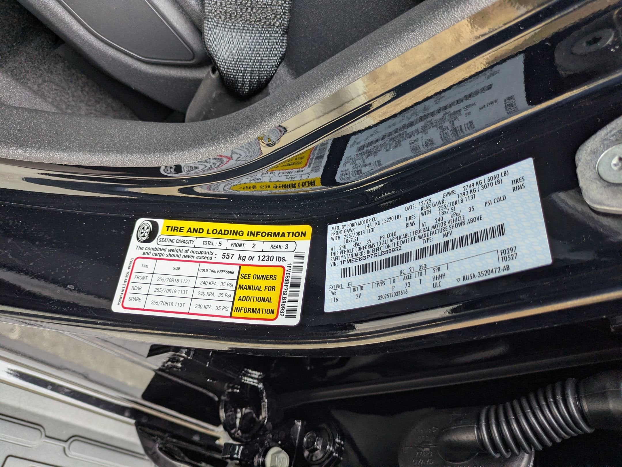 - Tires: P255/70R18 A/T -inc: full size spare tire w/TPMS