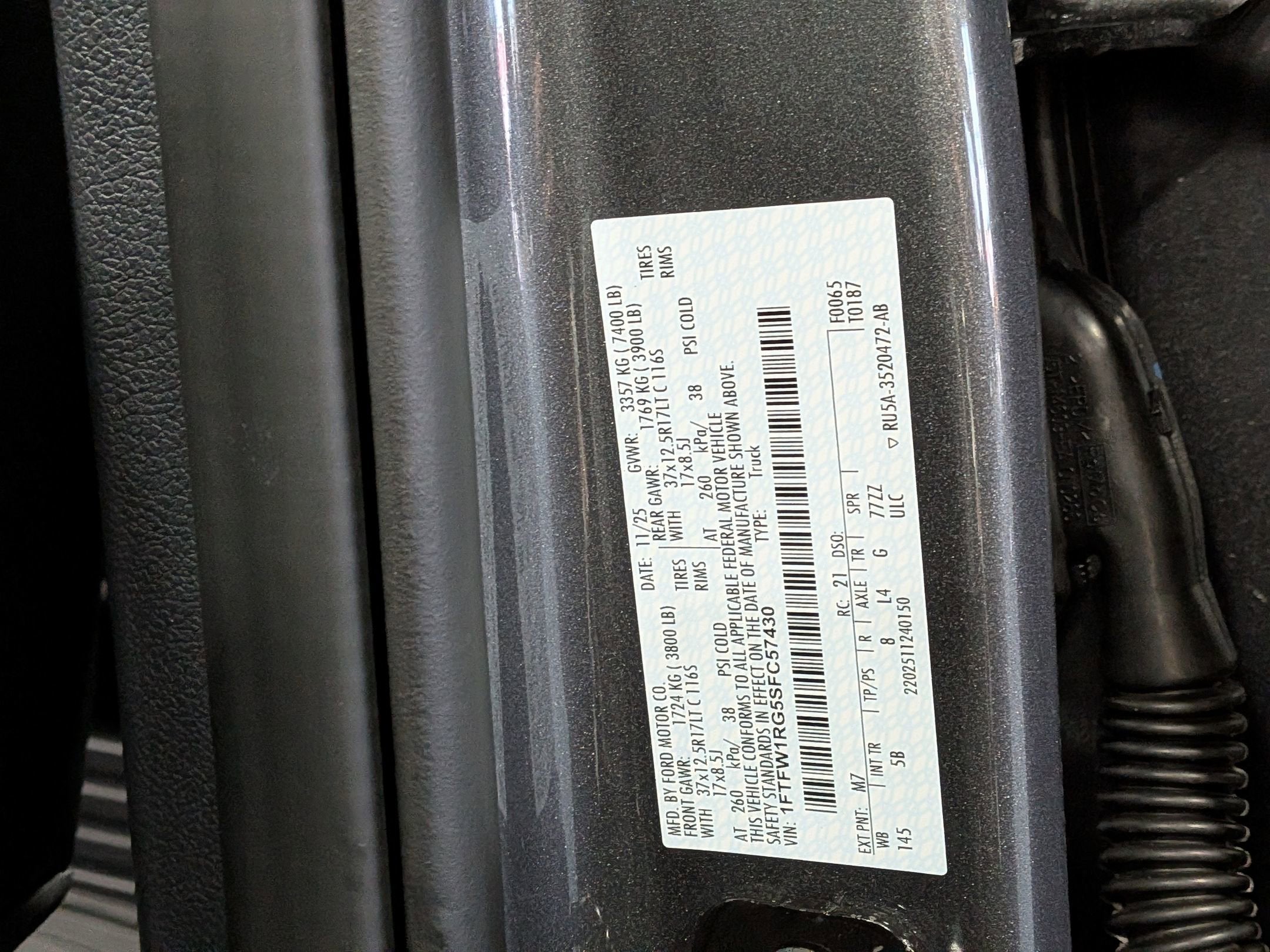 - Gross Axle Wt Rating - Front (lbs): 3800