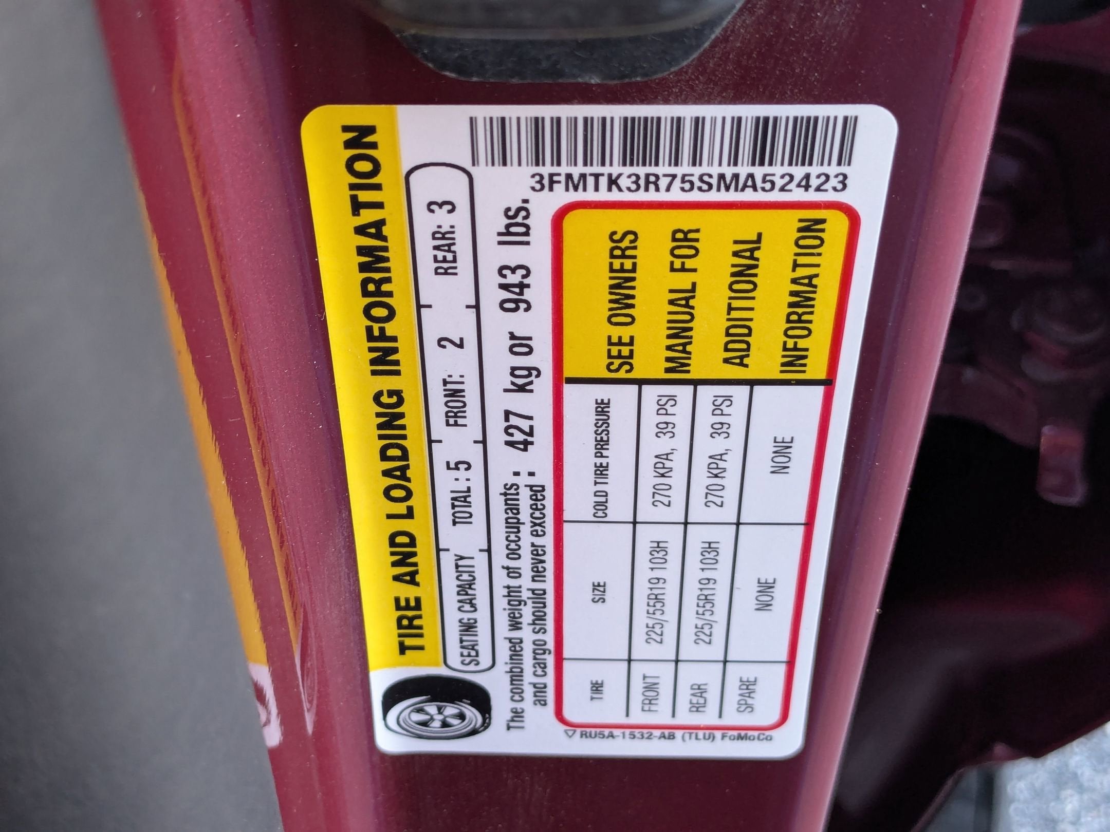 - Front Tire Size: P225/55HR19