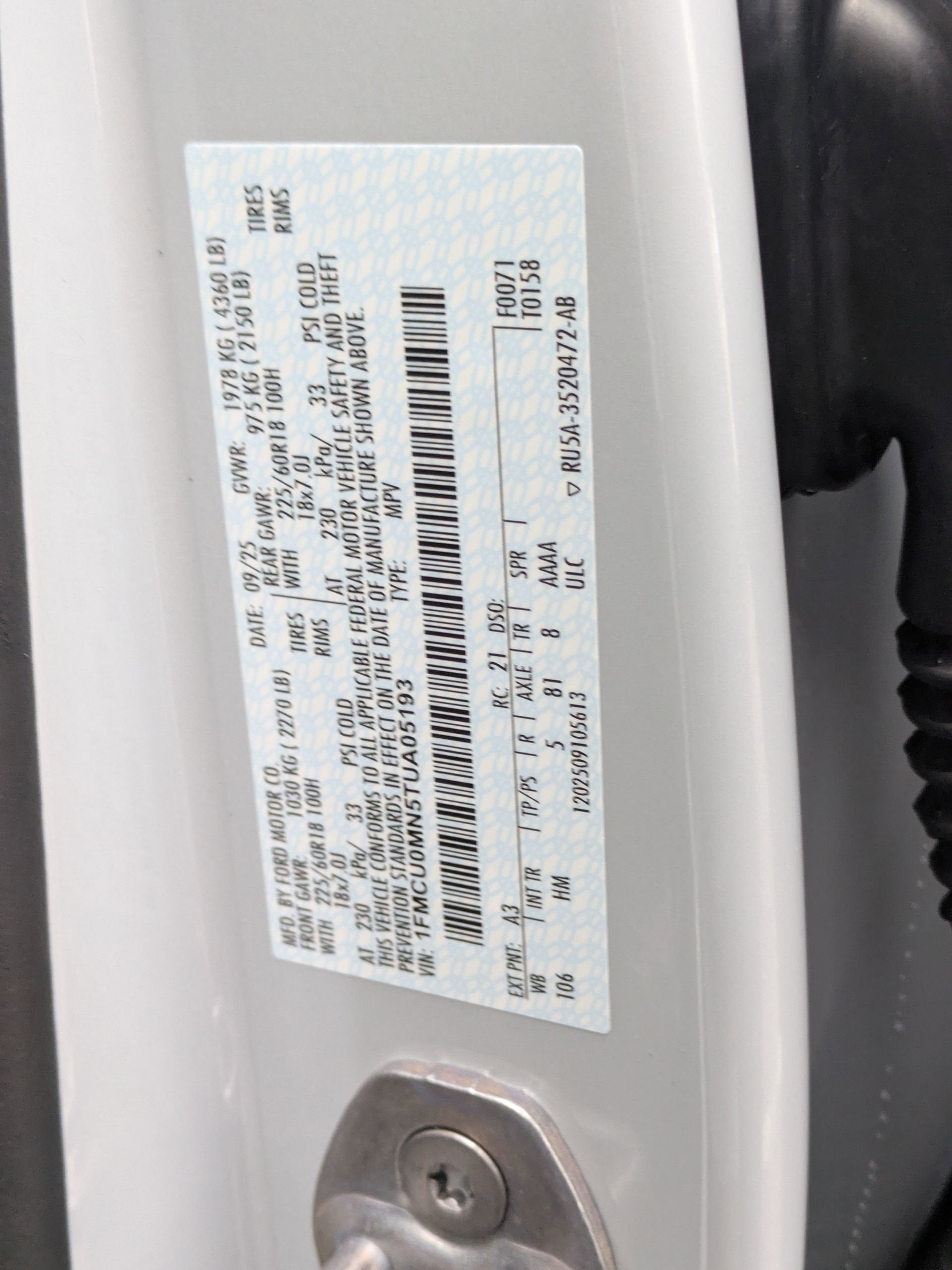 - Vehicle Name: Ford Escape
