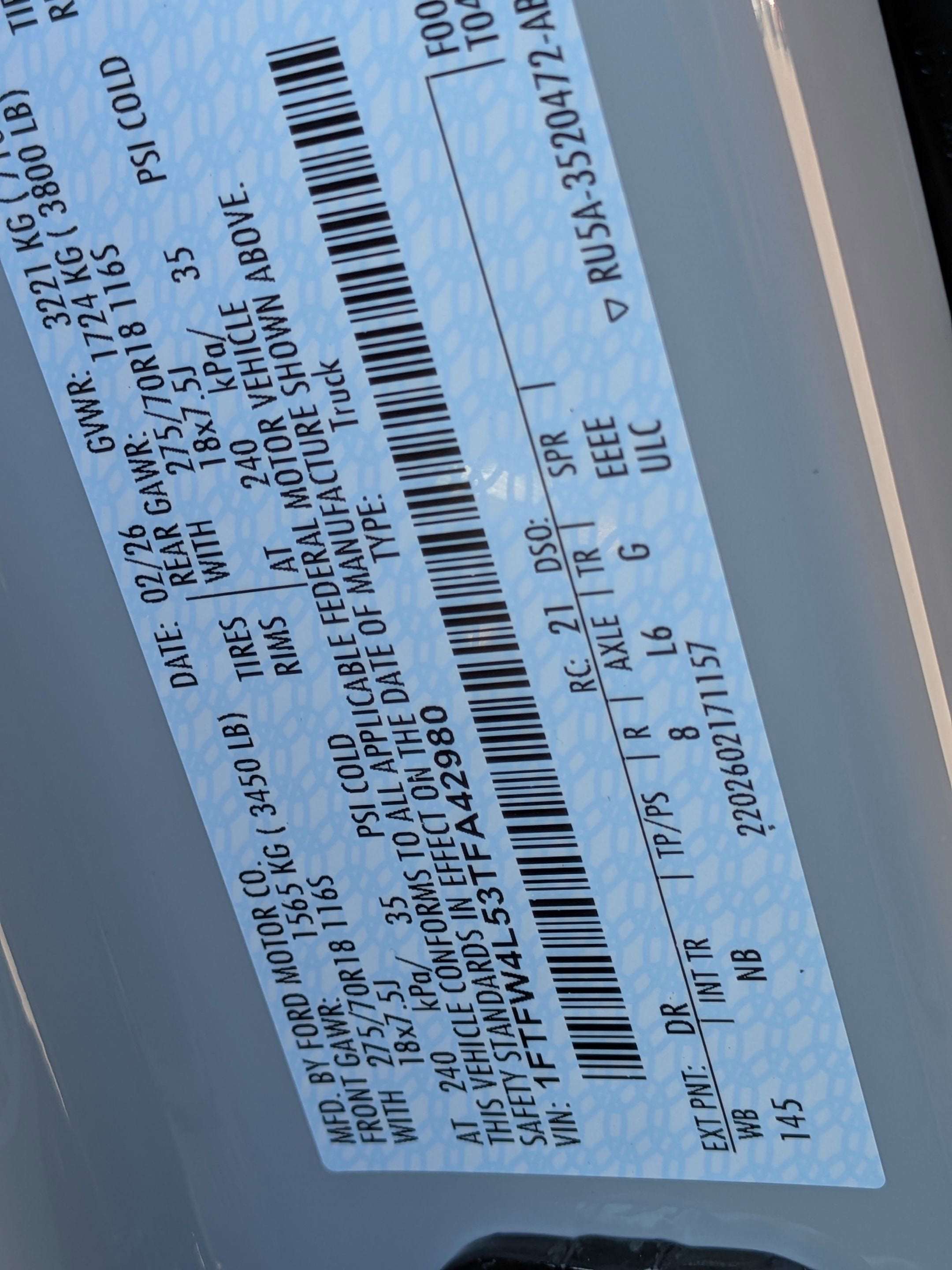 - Gross Axle Wt Rating - Front (lbs): 3750