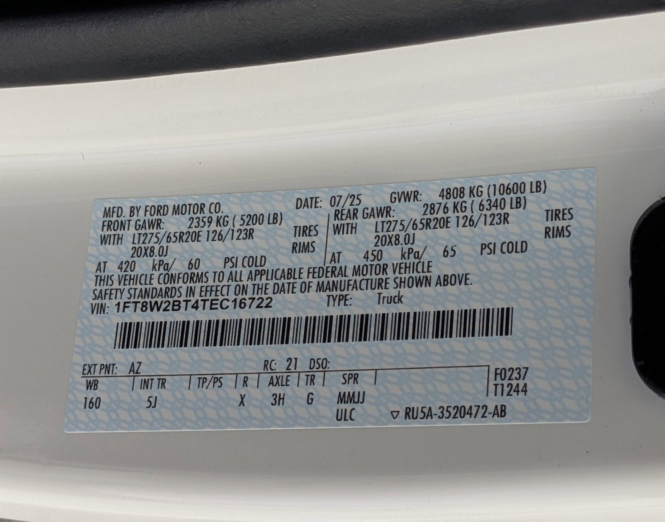 F-250Ā® Greater than 10K GVWR Package