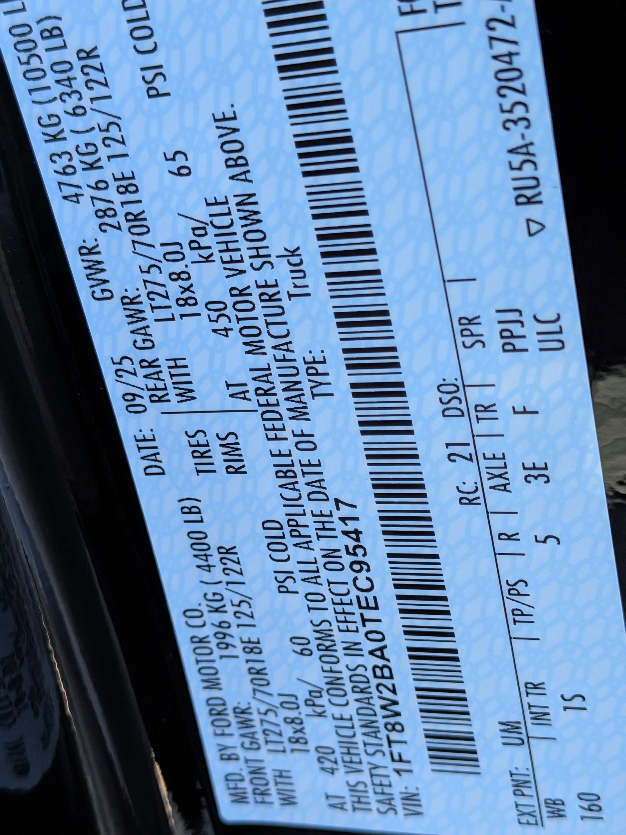 - Rear Tire Size: LT245/75SR17