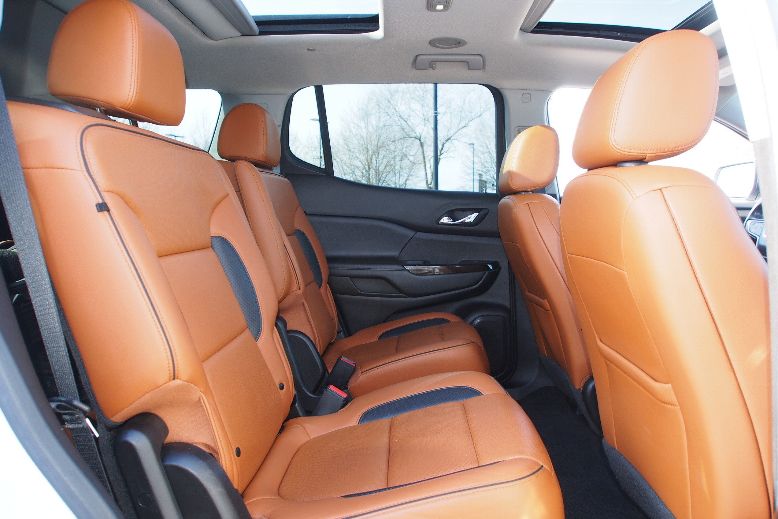AWD, Jet Black/Kalahari Leather, 1st & 2nd Row All-Weather Floor Liner (LPO), 3.49 Final Drive Axle Ratio, 3rd Row All-Weather Floor Liner (LPO), 4-Way Manual Passenger Seat Adjuster, 4-Wheel Disc Brakes, 5-Passenger (2-3 Seating Configuration), 6 Speakers, 6-Passenger (2-2-2 Seating Configuration), 6-Speaker Audio System Feature, 8-Way Power Driver Seat Adjuster, 8-Way Power Passenger Seat Adjuster, ABS brakes, Air Conditioning, Alloy wheels, AM/FM radio: SiriusXM, Apple CarPlay/Android Auto, Auto High-beam Headlights, Auto-dimming Rear-View mirror, Automatic Emergency Braking, Automatic temperature control, Black Center Caps w/Red GMC Logo (LPO), Bose Premium 8-Speaker Audio System Feature, Brake assist, Bumpers: body-color, Compass, Delay-off headlights, Driver Alert Package II (BGP), Driver door bin, Driver vanity mirror, Dual front impact airbags, Dual front side impact airbags, Dual SkyScape 2-Panel Power Sunroof, Electronic Stability Control, Emergency communication system: OnStar and GMC connected services capable, Floor Liner Package (LPO), Following Distance Indicator, Forward Collision Alert, Four wheel independent suspension, Front & Rear Park Assist, Front anti-roll bar, Front Bucket Seats, Front Center Armrest, Front dual zone A/C, Front fog lights, Front License Plate Bracket, Front Pedestrian Braking, Front reading lights, Fully automatic headlights, Garage door transmitter, HD Radio, Heated door mirrors, Heated Driver & Front Passenger Seats, Heated front seats, Illuminated entry, Infotainment Package (DISC), Integrated Cargo Liner (LPO), IntelliBeam Automatic High-Beam Headlamps, Knee airbag, Lane Keep Assist w/Lane Departure Warning, Low tire pressure warning, Occupant sensing airbag, Outside temperature display, Overhead airbag, Overhead console, Panic alarm, Passenger door bin, Passenger vanity mirror, Power door mirrors, Power Driver Lumbar Control Seat Adjuster, Power driver seat, Power Liftgate, Power steering, Power windows, Preferred Equipment Group 4SB, Premium audio system: GMC Infotainment System, Premium Cloth Seat Trim, Radio data system, Radio: AM/FM 8" Diagonal Multi-Touch Nav (DISC), Radio: AM/FM 8" Diagonal Multi-Touch Navigation, Rear Air, Rear air conditioning, Rear anti-roll bar, Rear reading lights, Rear seat center armrest, Rear window defroster, Rear window wiper, Remote keyless entry, Roof rack: rails only, Safety Alert Seat, Security system, SiriusXM Radio, SiriusXM w/360L, Speed control, Speed-sensing steering, Split folding rear seat, Spoiler, Steering wheel mounted audio controls, Tachometer, Telescoping steering wheel, Tilt steering wheel, Traction control, Trip computer, Turn signal indicator mirrors, Variably intermittent wipers, Voltmeter, Wheels: 17" Gloss Black Aluminum, AWD, Jet Black/Kalahari Leather.