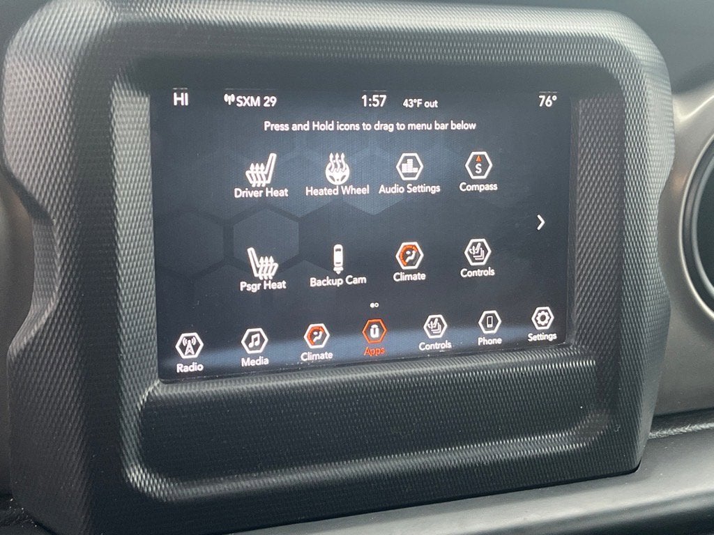 - TECHNOLOGY GROUP -inc: Google Android Auto Cluster 7.0 TFT Color Display SiriusXM Satellite Radio (subscription required) USB Host Flip Integrated Center Stack Radio 7.0 Touchscreen Display Air Conditioning w/Auto Temp Control Radio: Uconnect 4 w/7 Display Apple CarPlay Air Filtering GPS Antenna Input