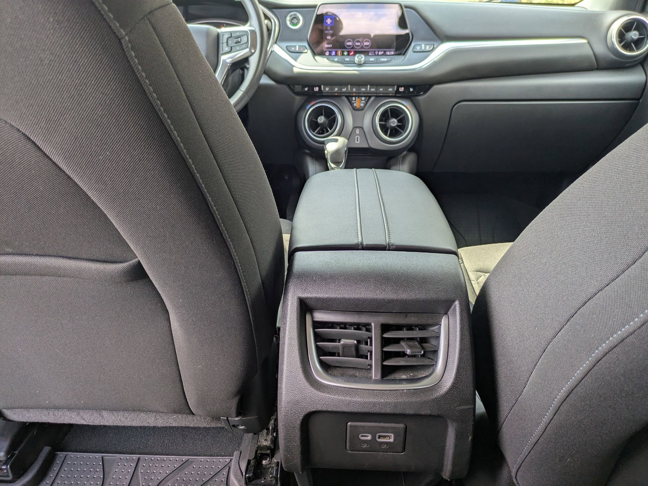- USB charging-only ports 2, one type-A and one type-C, located on rear of center console