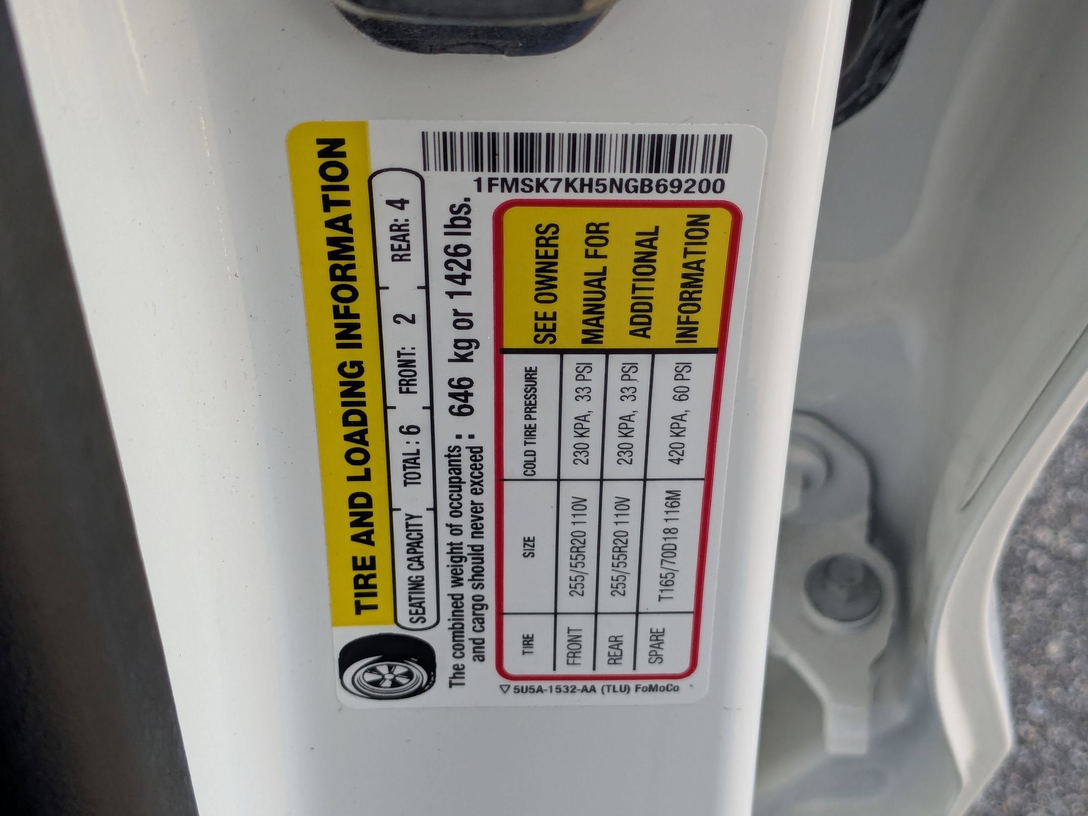 - Front Tire Size: P255/55VR20