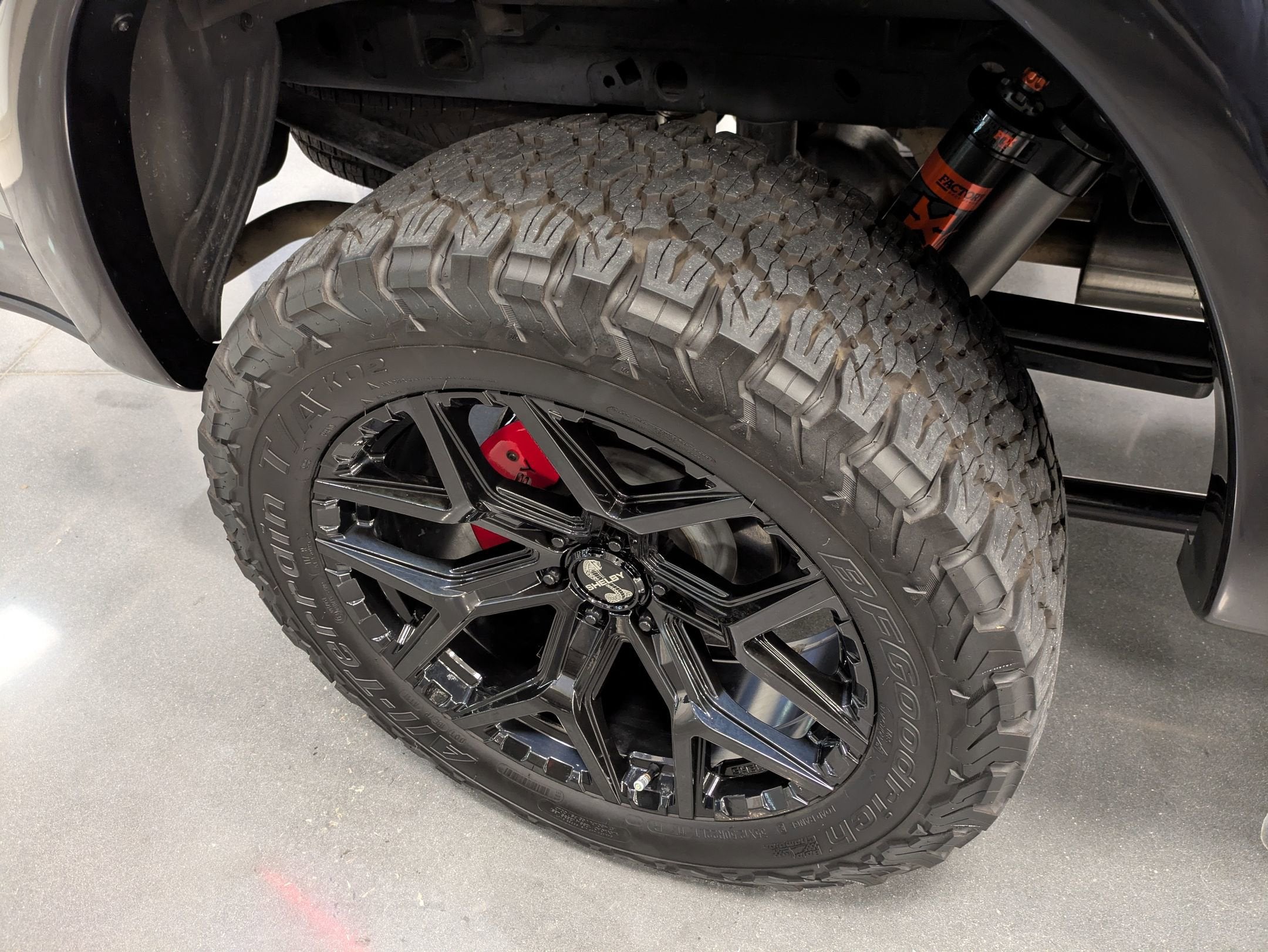 Wheels/Tires: 35-inch BFGoodrich All-Terrain T/A KO2 tires on unique Shelby wheels.