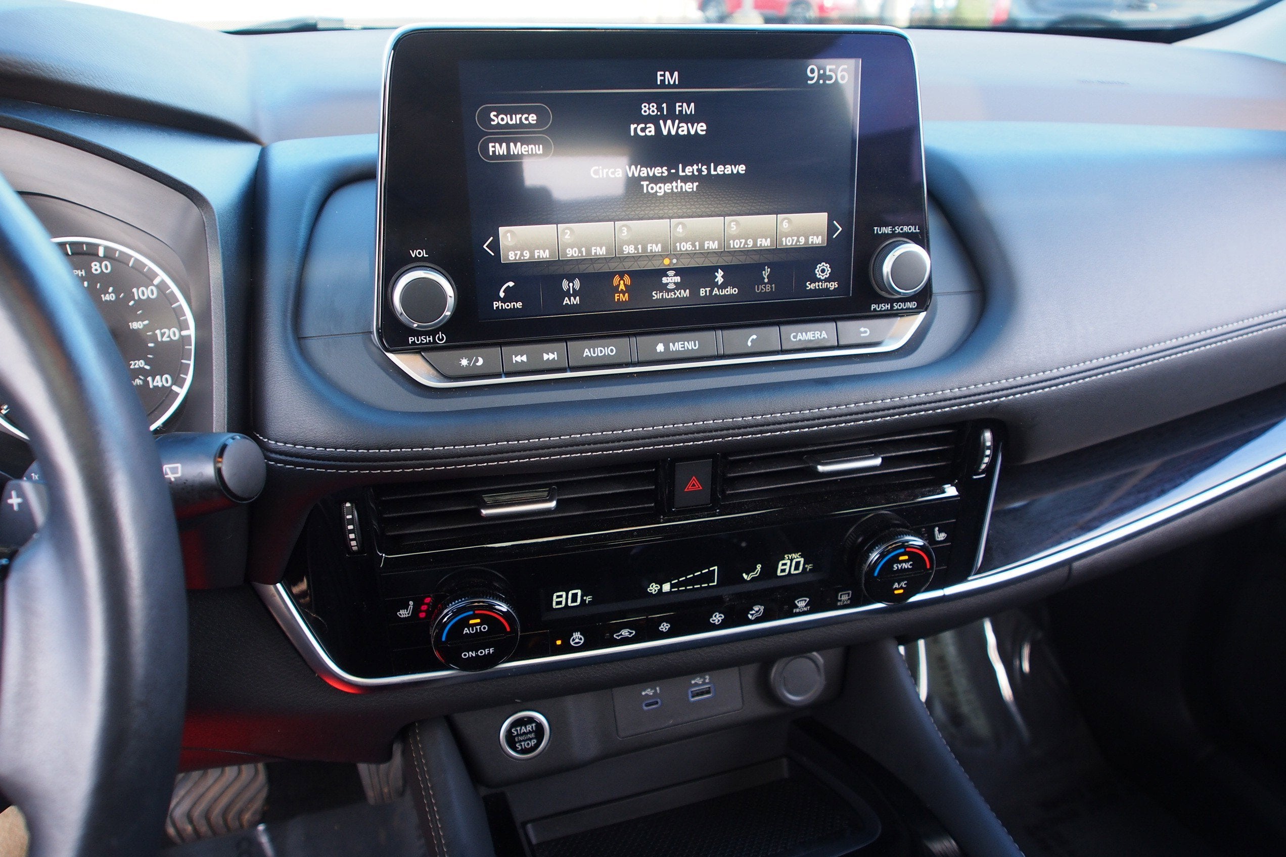 19" Aluminum Alloy Wheels, 4-Wheel Disc Brakes, 5.604 Axle Ratio, 6 Speakers, ABS brakes, Air Conditioning, Alloy wheels, AM/FM Radio, AM/FM radio: SiriusXM, Auto High-beam Headlights, Auto-dimming Rear-View mirror, Automatic temperature control, Black Splash Guards (Set of 4), Brake assist, Bumpers: body-color, Chrome Rear Bumper Protector, Delay-off headlights, Driver door bin, Driver vanity mirror, Dual front impact airbags, Dual front side impact airbags, Electronic Stability Control, Emergency communication system: NissanConnect Services, First Aid Kit, Floor Mats w/2-Piece Cargo Area Protector, Four wheel independent suspension, Front anti-roll bar, Front Bucket Seats, Front Center Armrest, Front dual zone A/C, Front reading lights, Fully automatic headlights, Heated door mirrors, Heated Front Bucket Seats, Heated front seats, Heated steering wheel, Illuminated entry, Knee airbag, Leather steering wheel, Leather-Appointed Seat Trim, Low tire pressure warning, Memory seat, NissanConnect featuring Apple CarPlay and Android Auto, Occupant sensing airbag, Outside temperature display, Overhead airbag, Overhead console, Panic alarm, Passenger door bin, Passenger vanity mirror, Power door mirrors, Power driver seat, Power Liftgate, Power moonroof, Power passenger seat, Power steering, Power windows, Radio data system, Rear anti-roll bar, Rear Parking Sensors, Rear reading lights, Rear seat center armrest, Rear side impact airbag, Rear window defroster, Rear window wiper, Remote keyless entry, Security system, Speed control, Speed-Sensitive Wipers, Split folding rear seat, Spoiler, Steering wheel mounted audio controls, Tachometer, Telescoping steering wheel, Tilt steering wheel, Traction control, Trip computer, Turn signal indicator mirrors, Variably intermittent wipers.