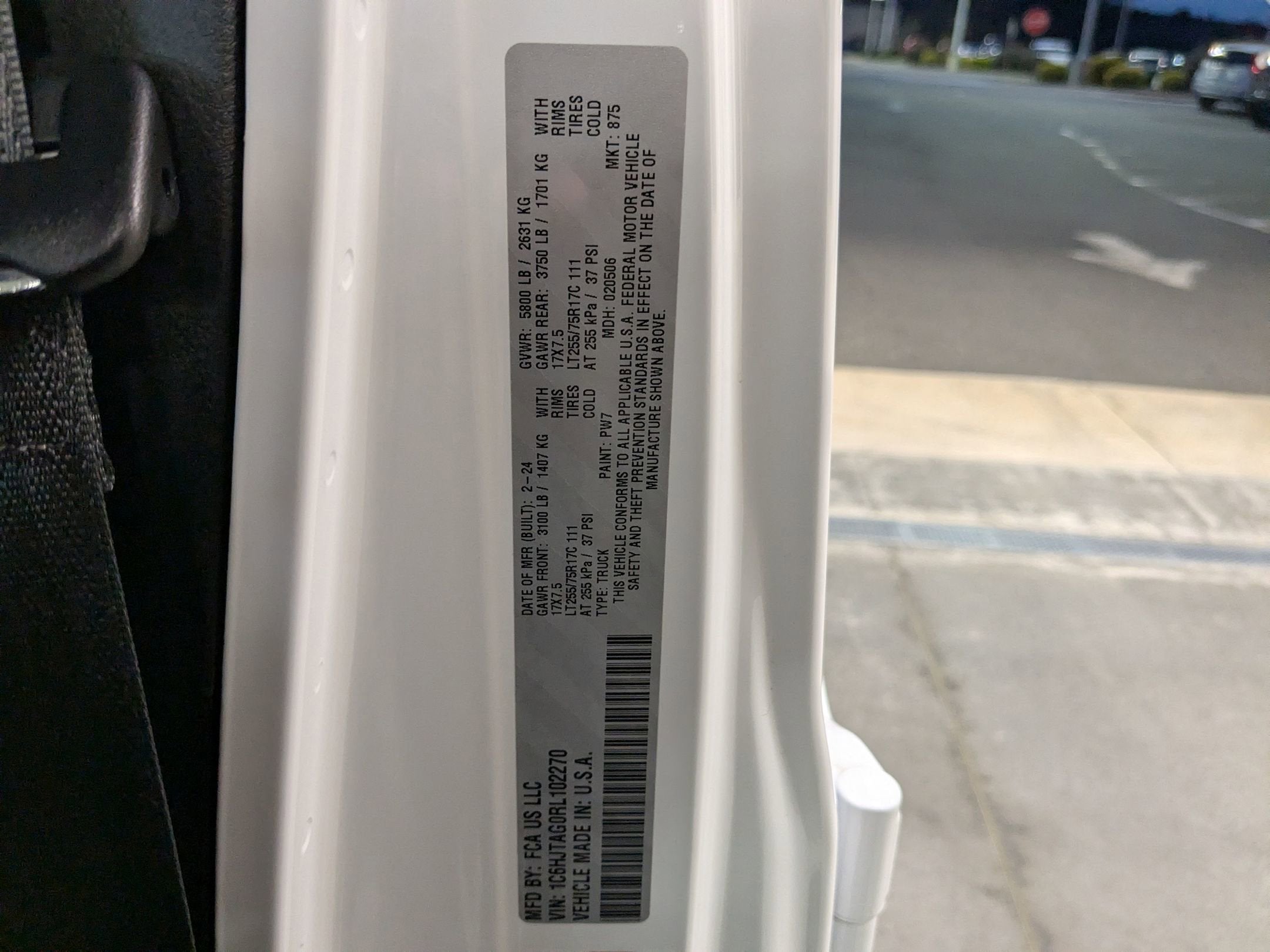 - Tires: LT255/75R17C OWL On/Off Road